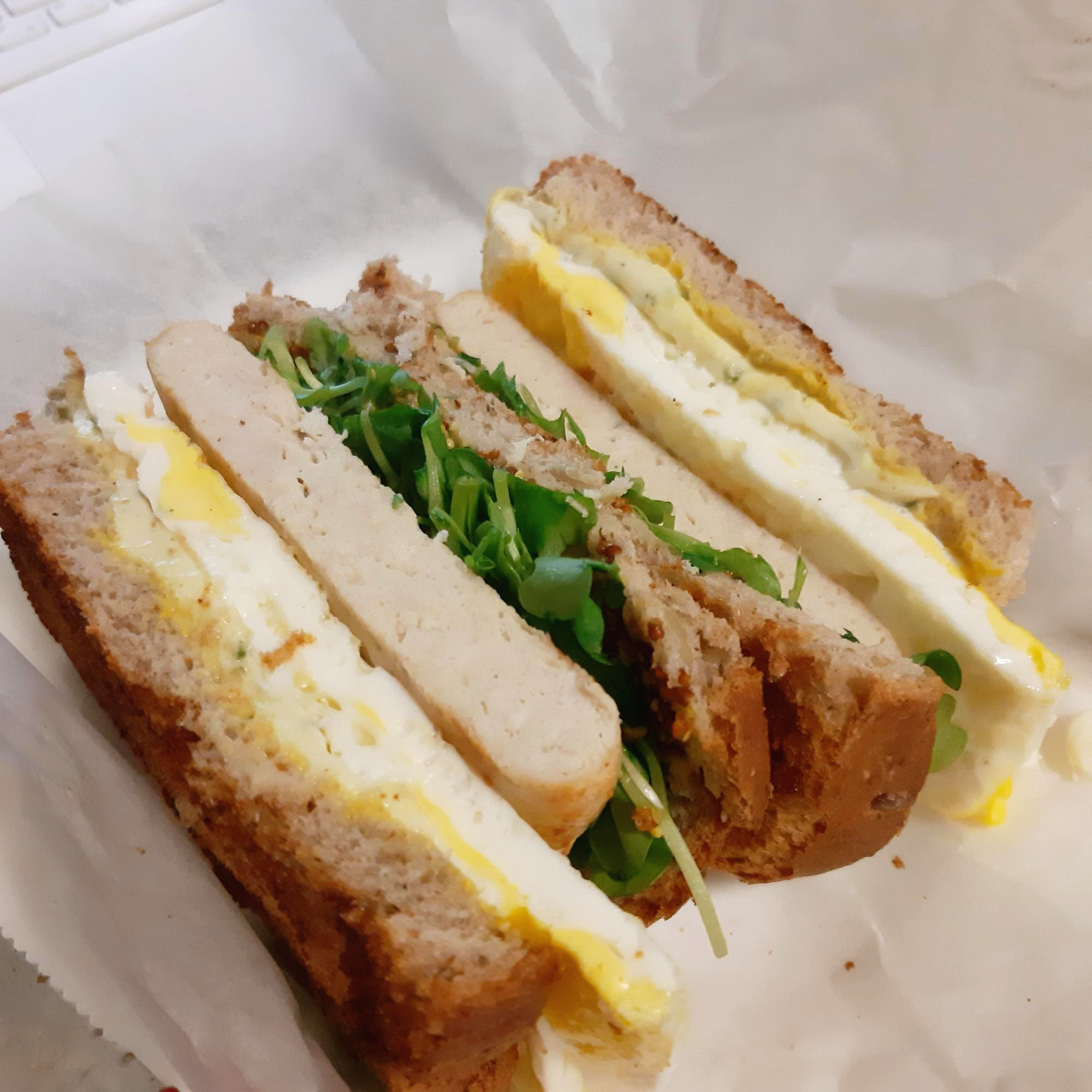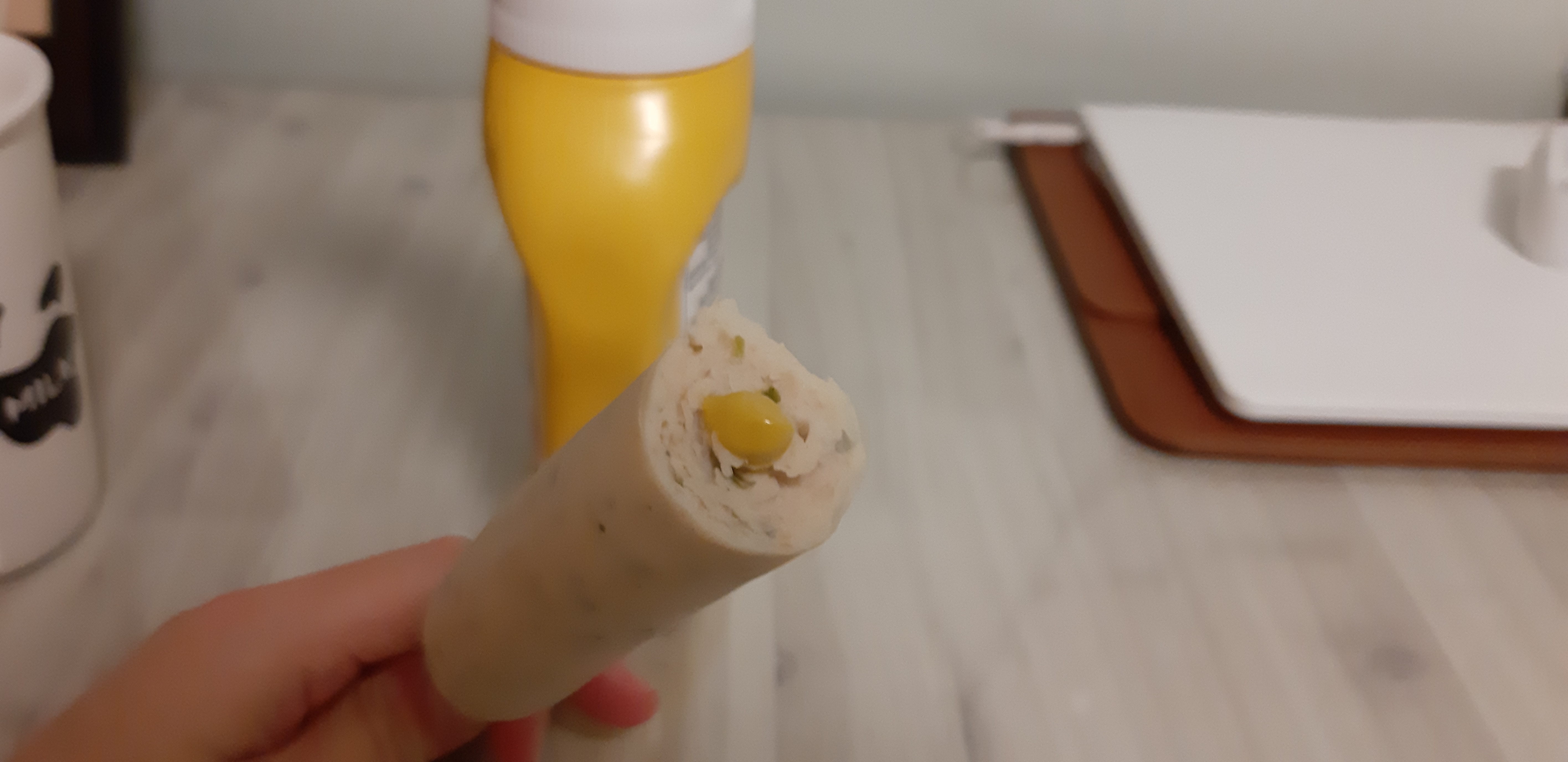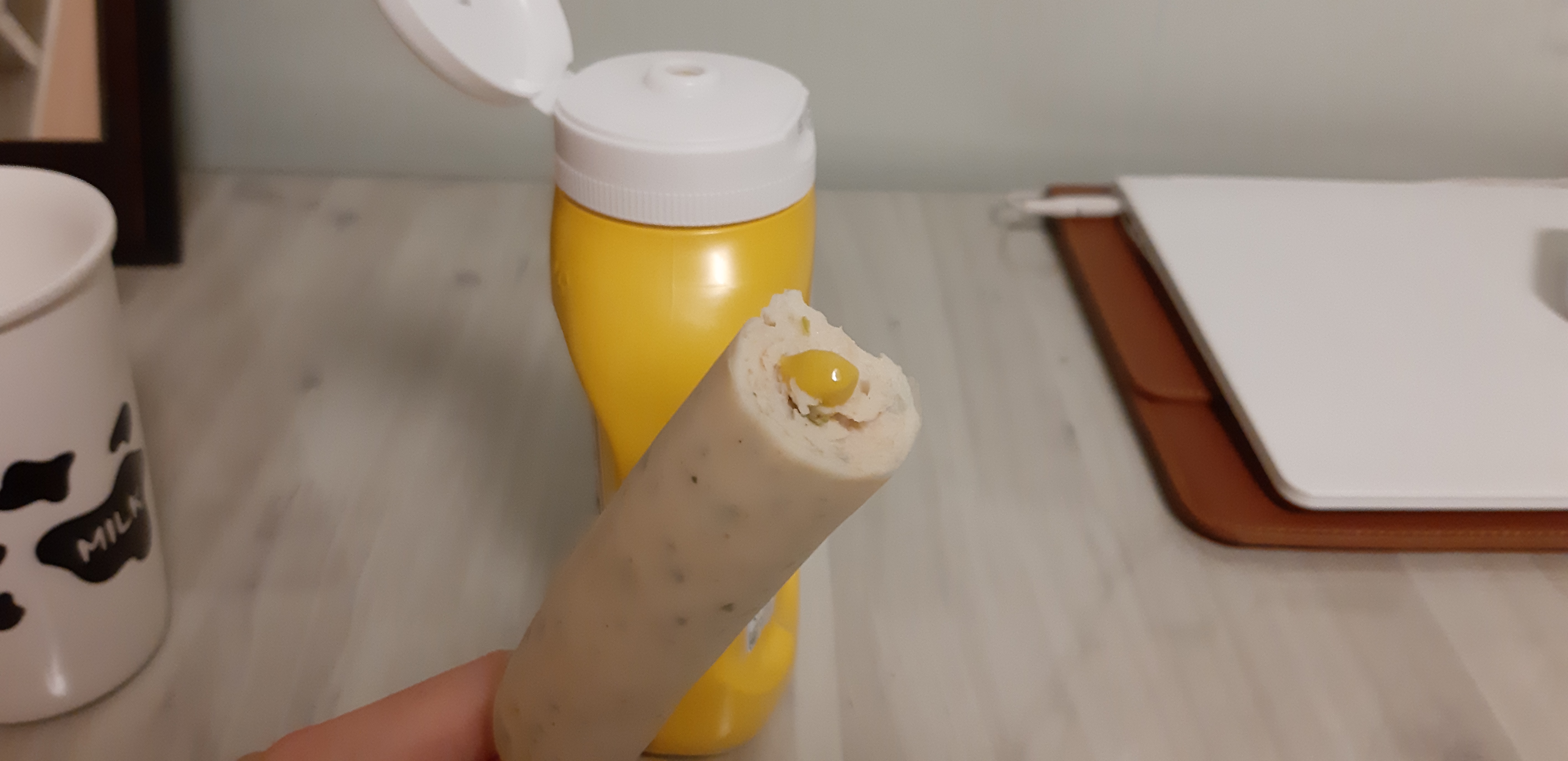 맛은 확실히 허니머스타드는 아니니 일반 머스타드 보다 더 신맛이 강한 편입니다. 달달한 소스맛은 아니지만 샌드위치에서 맛을 내기에 너무 잘 어울렸습니다. 개인적으로 닭가슴살 소세지에 짜먹는건 케찹이 더 낫지 않나 싶네요.