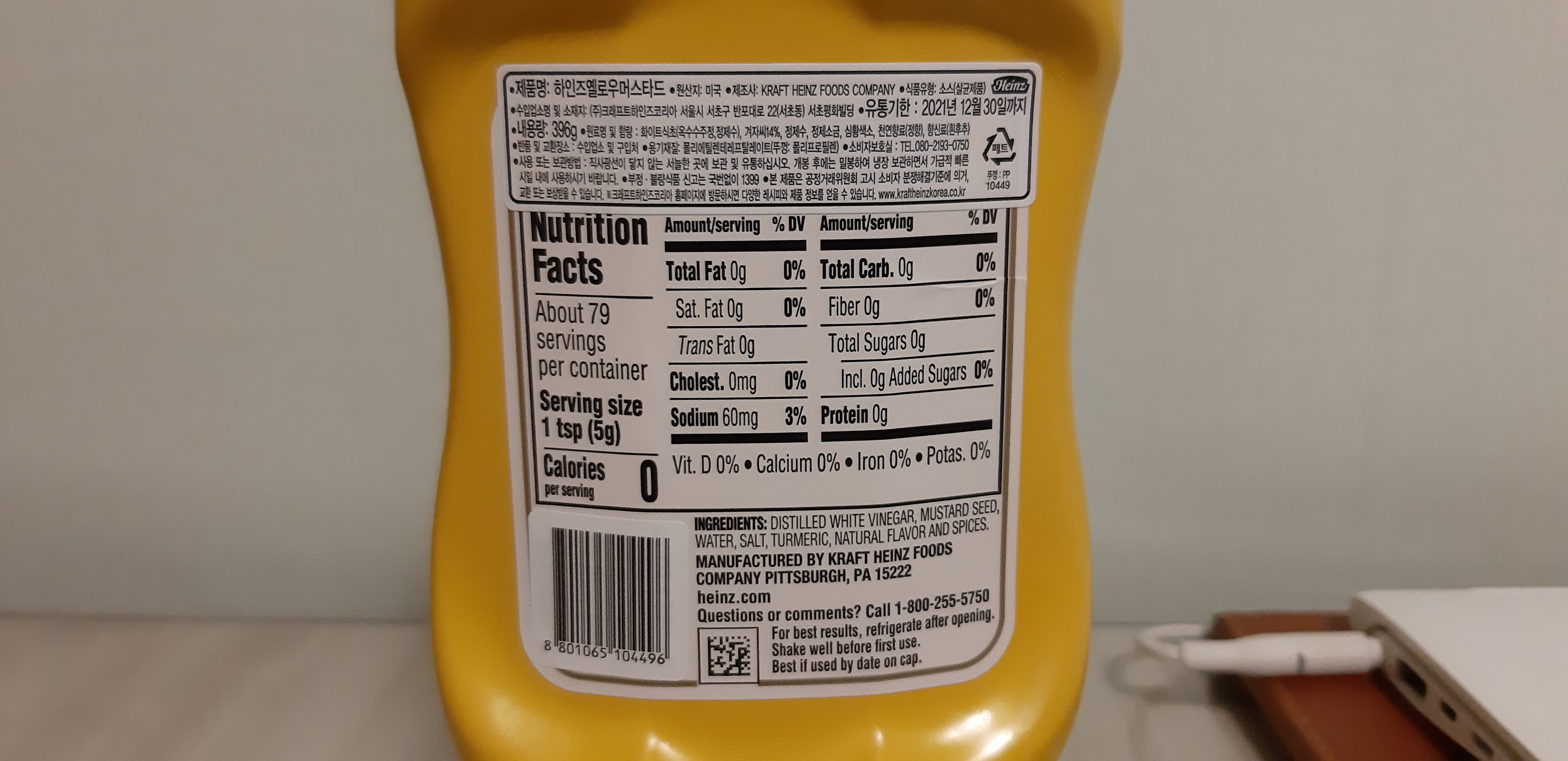 하인즈 제품은 여러개가 있는데 그중에서 "옐로우 머스타드" 제품이 제로 칼로리니까 헷갈리시면 안됩니다!