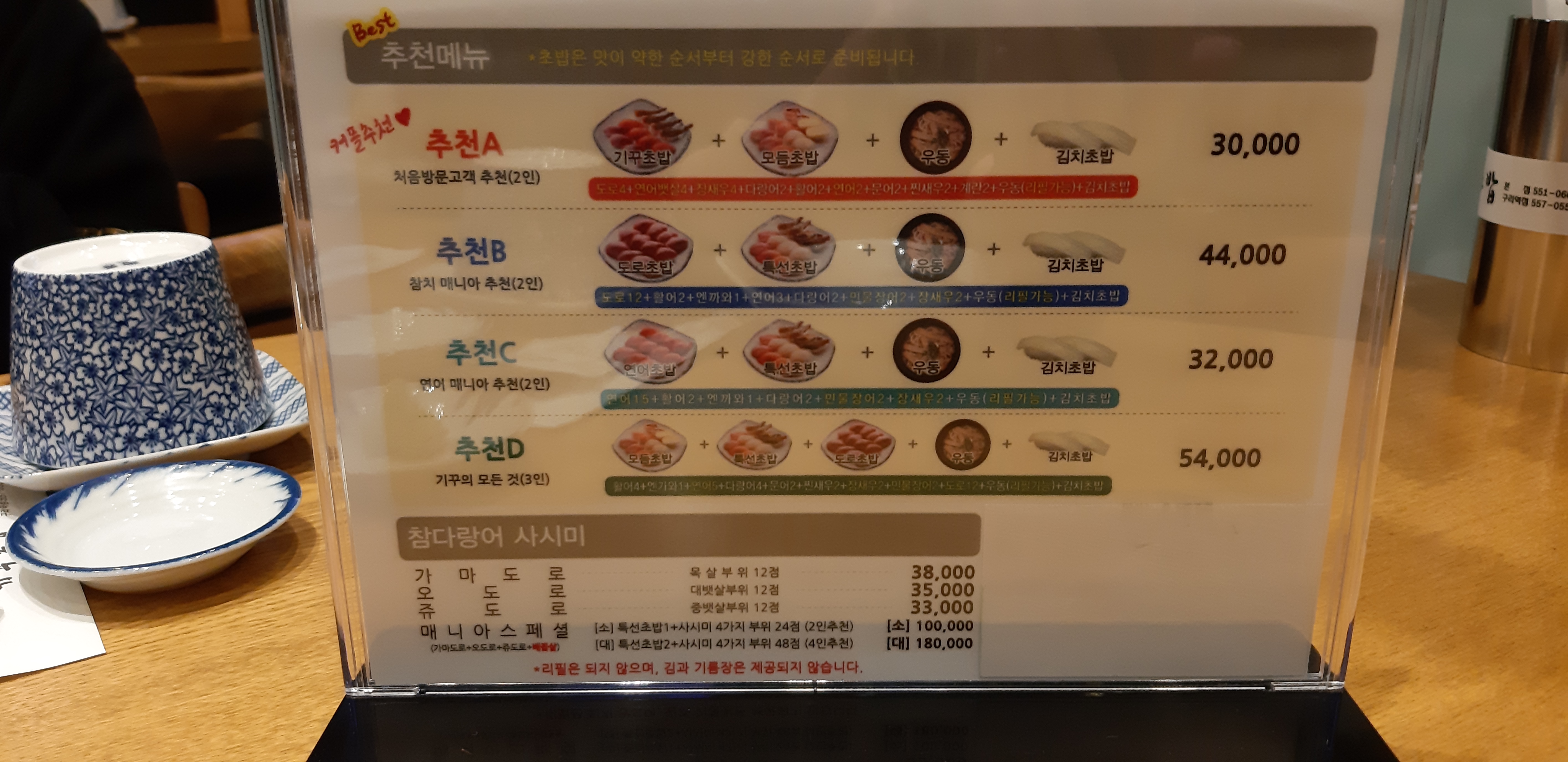 그리고 참치 초밥이 포함된 B세트의 가격이 너무 괜찮아서 2인에 44,000원이니 다음에 먹어볼까 합니다. 가성비 좋은 초밥집입니다!