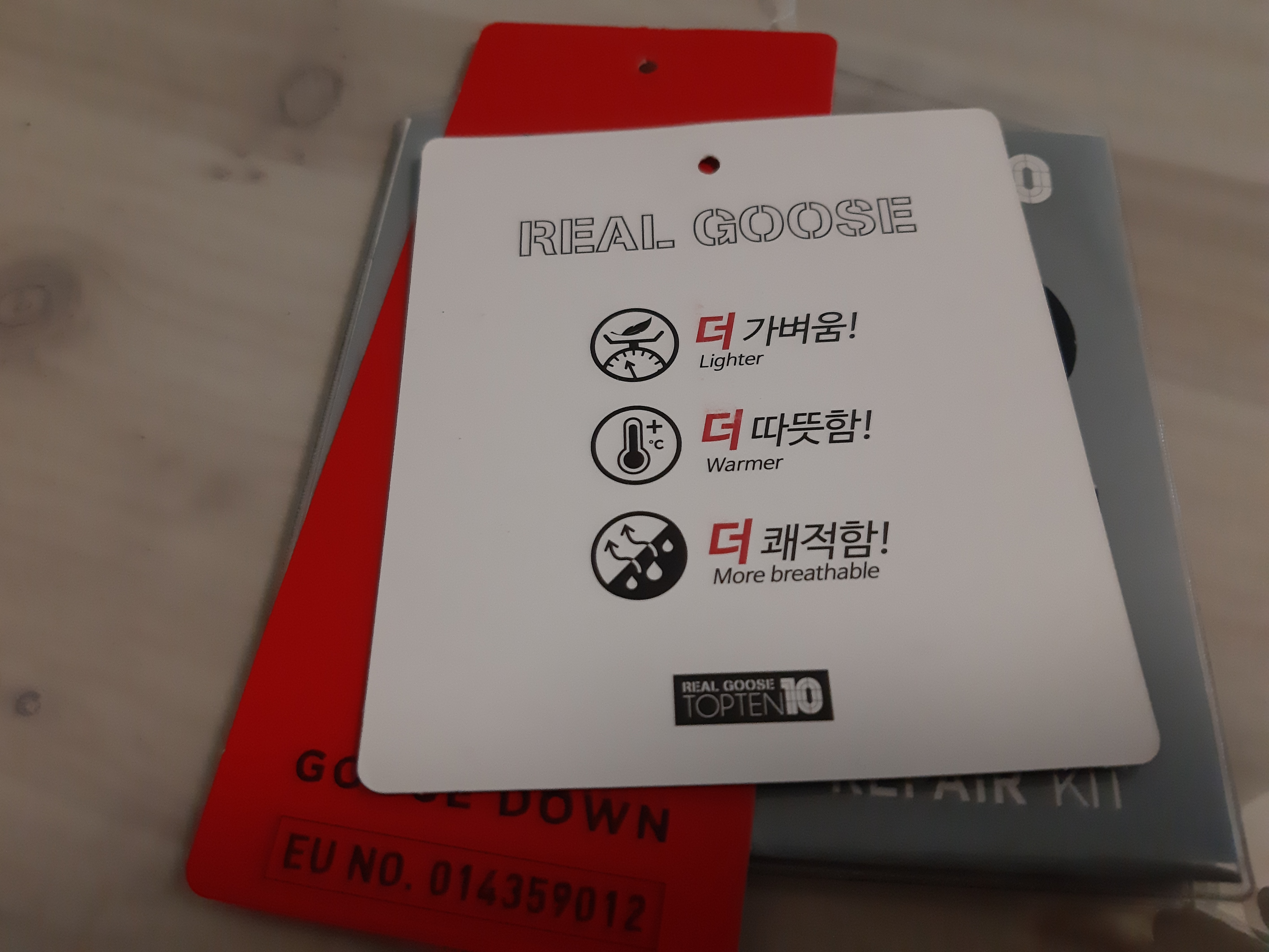 내부에는 이렇게 함유량도 써져있는데, 구스가 포함된 것 치고는 굉장히 저렴하게 구매하기도 했습니다. 이전에 다른 분은 13만원에 해당 제품을 구매하고 가격대비 굉장히 만족스러웠다는 리뷰를 봤는데 4만원 대에 구매한 저는 너무 만족스럽네요. ㅎㅎ 실제 정가는 27만원 대인데, 27만원에는 구매할지 잘 모르겠지만 두 개를 구매해서 추가 할인으로 한 개당 3만원 후반으로 결제했습니다. 무조건 사야하는 가격이죠~