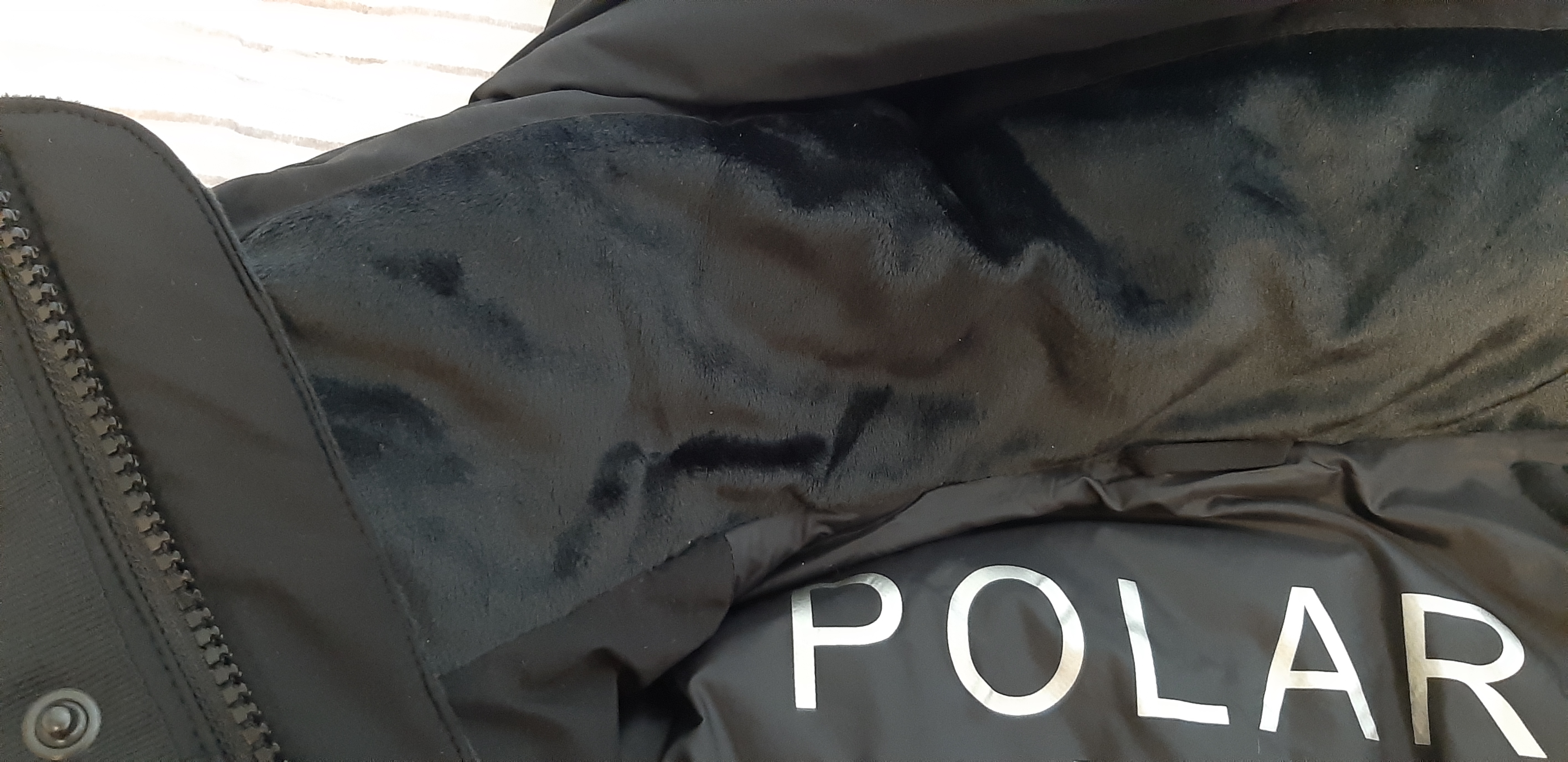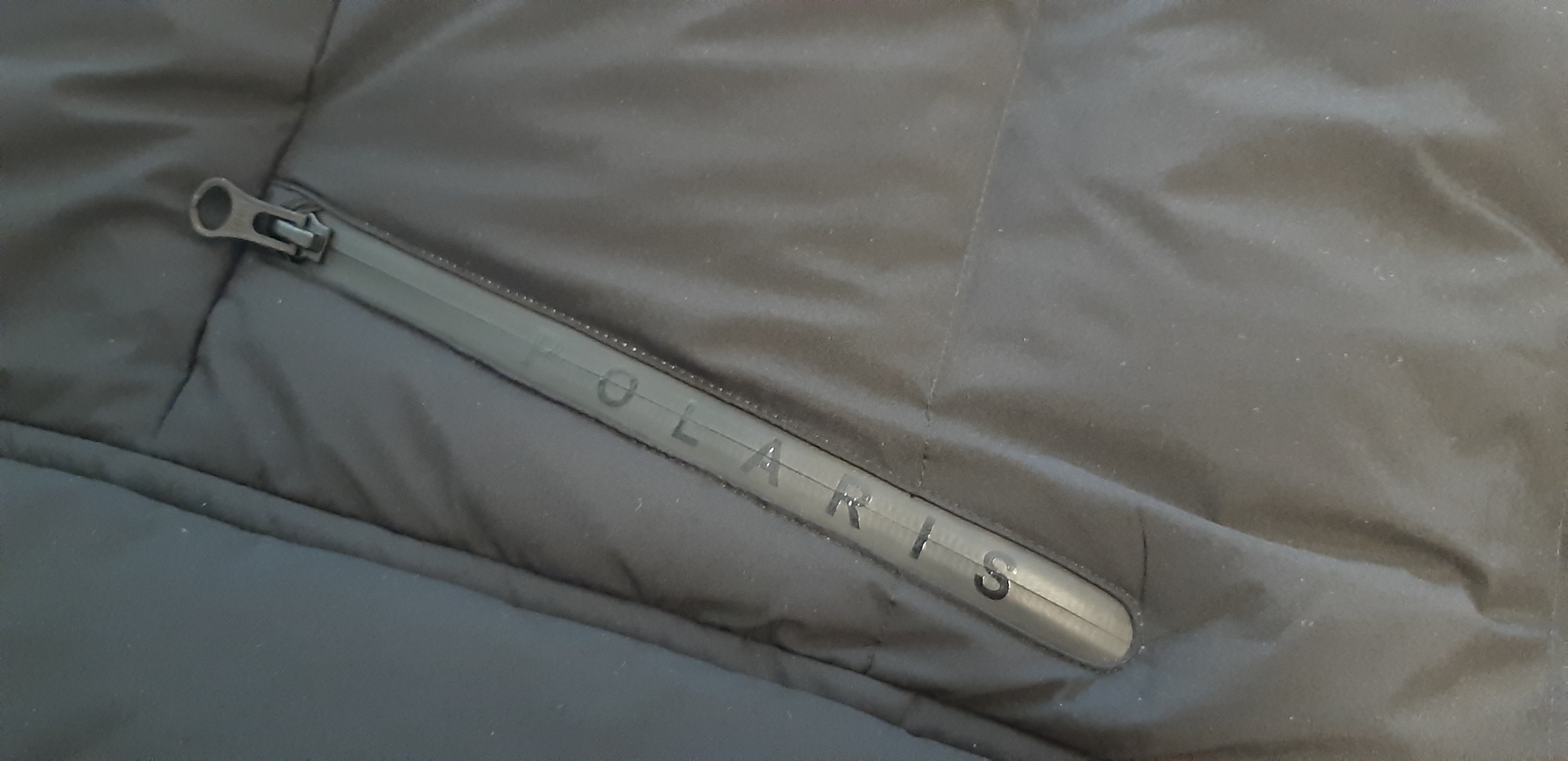 목부분에는 폴라리스라고 영문으로 써져있기도 하고, 다른 롱패딩이랑 다르게 좋았던 점은 팔 부분이 너무 허전하지 않게 영문으로 포인트가 있다는 점이었습니다. 그리고 목부분은 벨벳? 극세사? 같이 고급스럽게 작업이 되어있습니다.