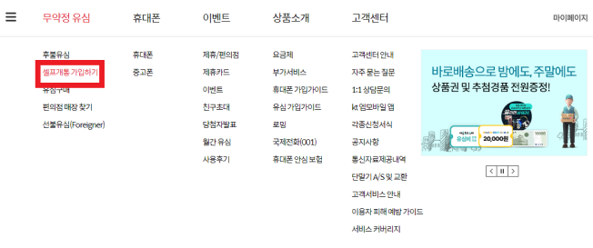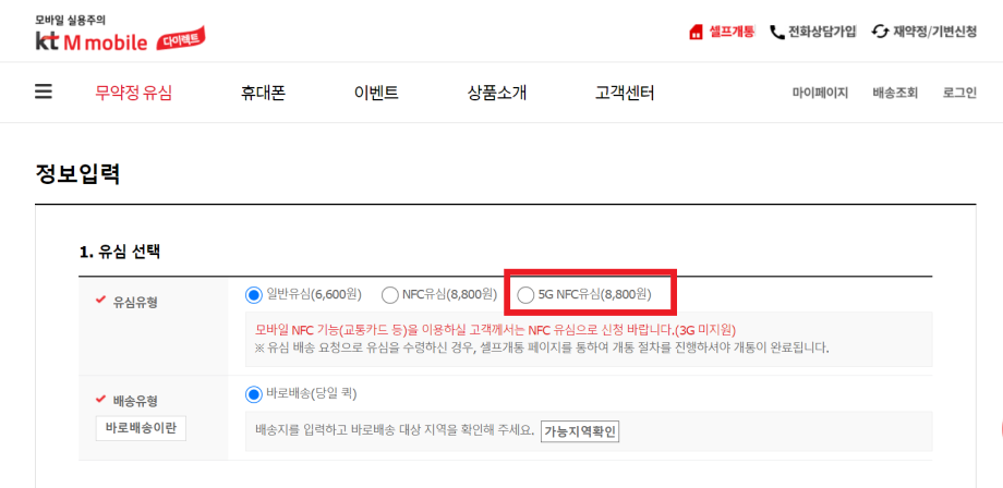 - 사이트의 [무약정유심] > [유심구매] 클릭