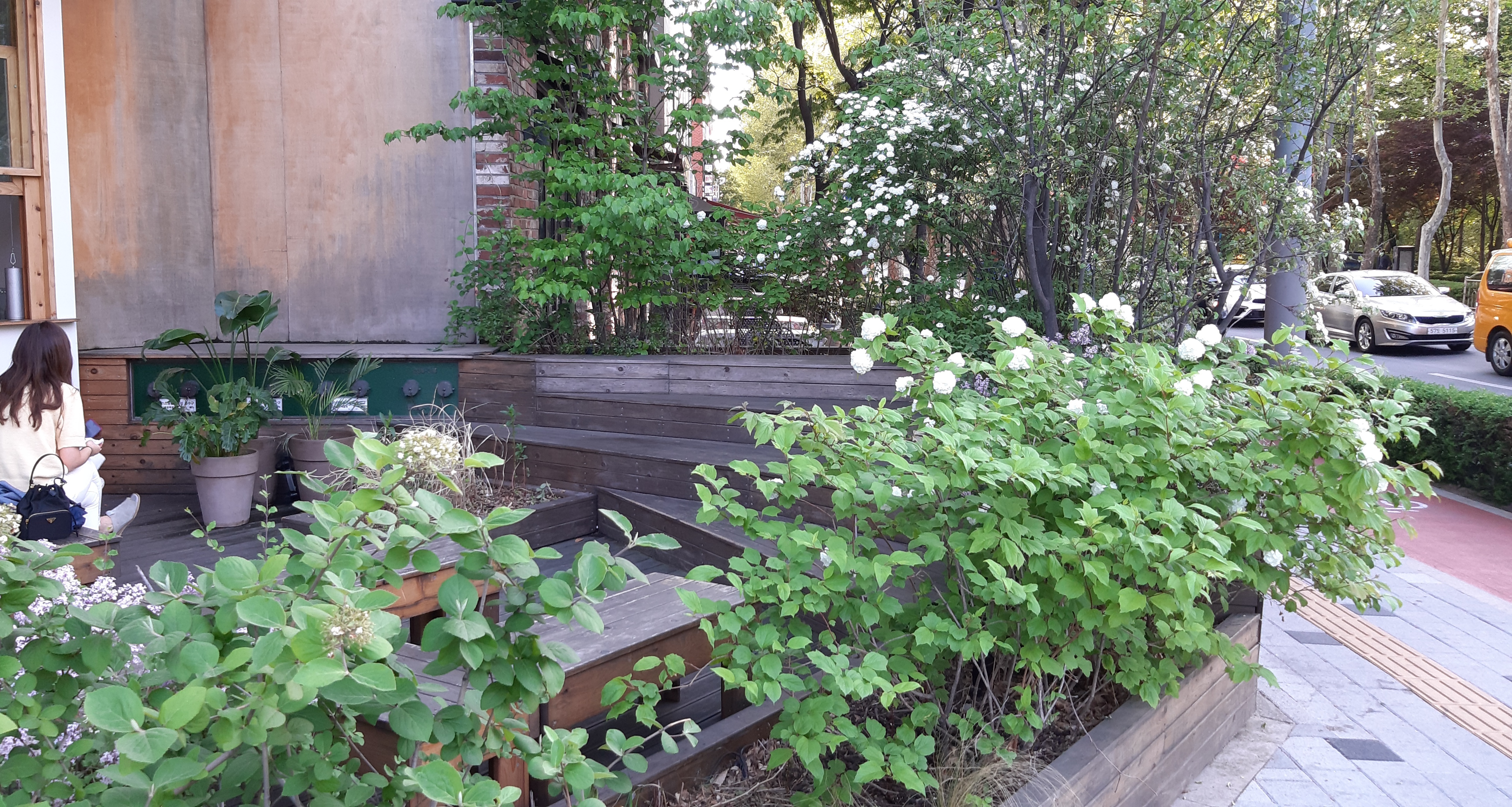 카페 앞에 꽃이랑 식물로 예쁘게 정원이 만들어져 있습니다.
