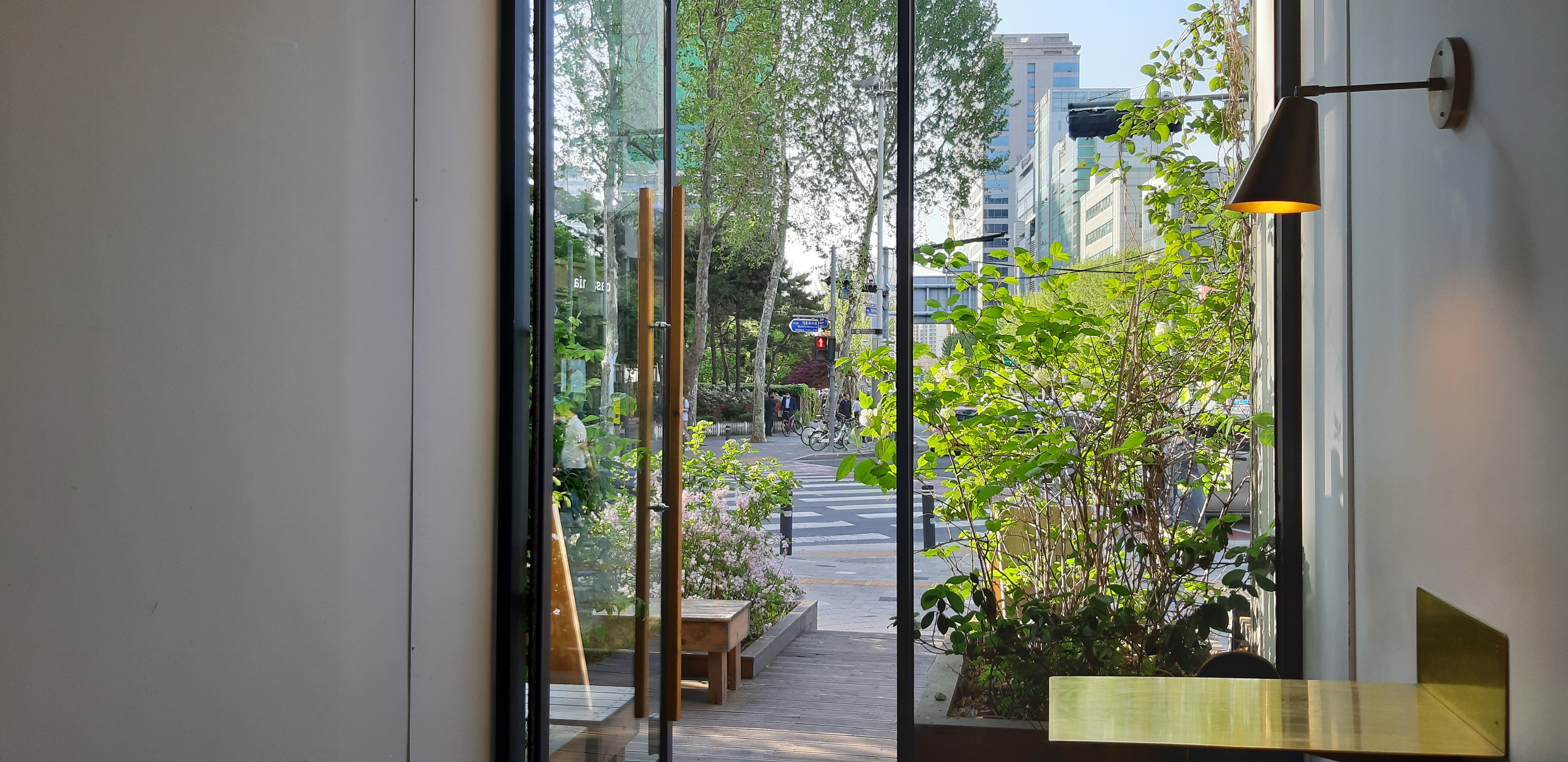 저는 창가에 자리잡았는데, 내부에서 보이는 풍경이 에뻐 기분전환하기 좋았습니다.
