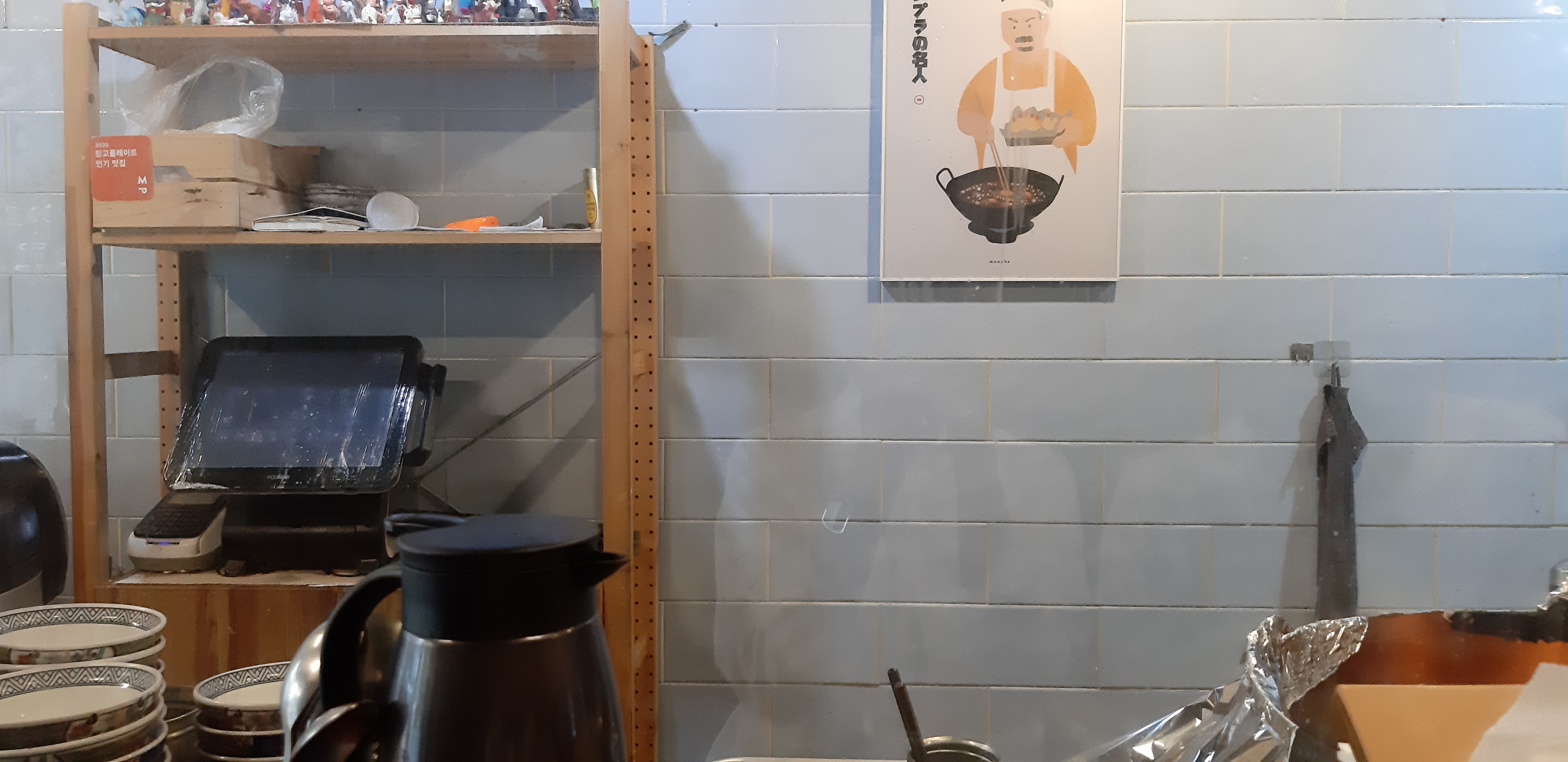 어쩌다보니 튀김기 바로 앞에 앉았는데, 앞에 유리가 있어서 튈 일도 없고 덜 부담스럽습니다. ㅎㅎ