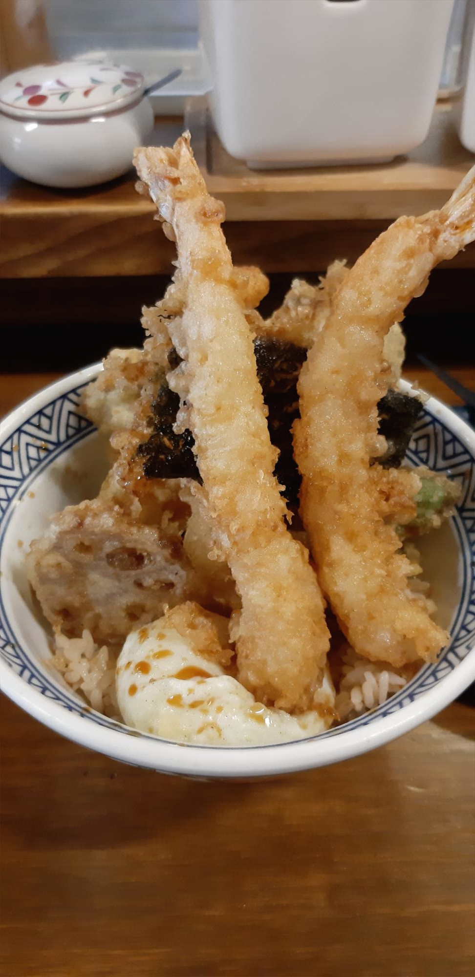 일단 때깔이 너무 곱네요. 위에 텐동 특제 간정 소스도 촤라락 뿌려주셔서 더 먹음직스러워보입니다.