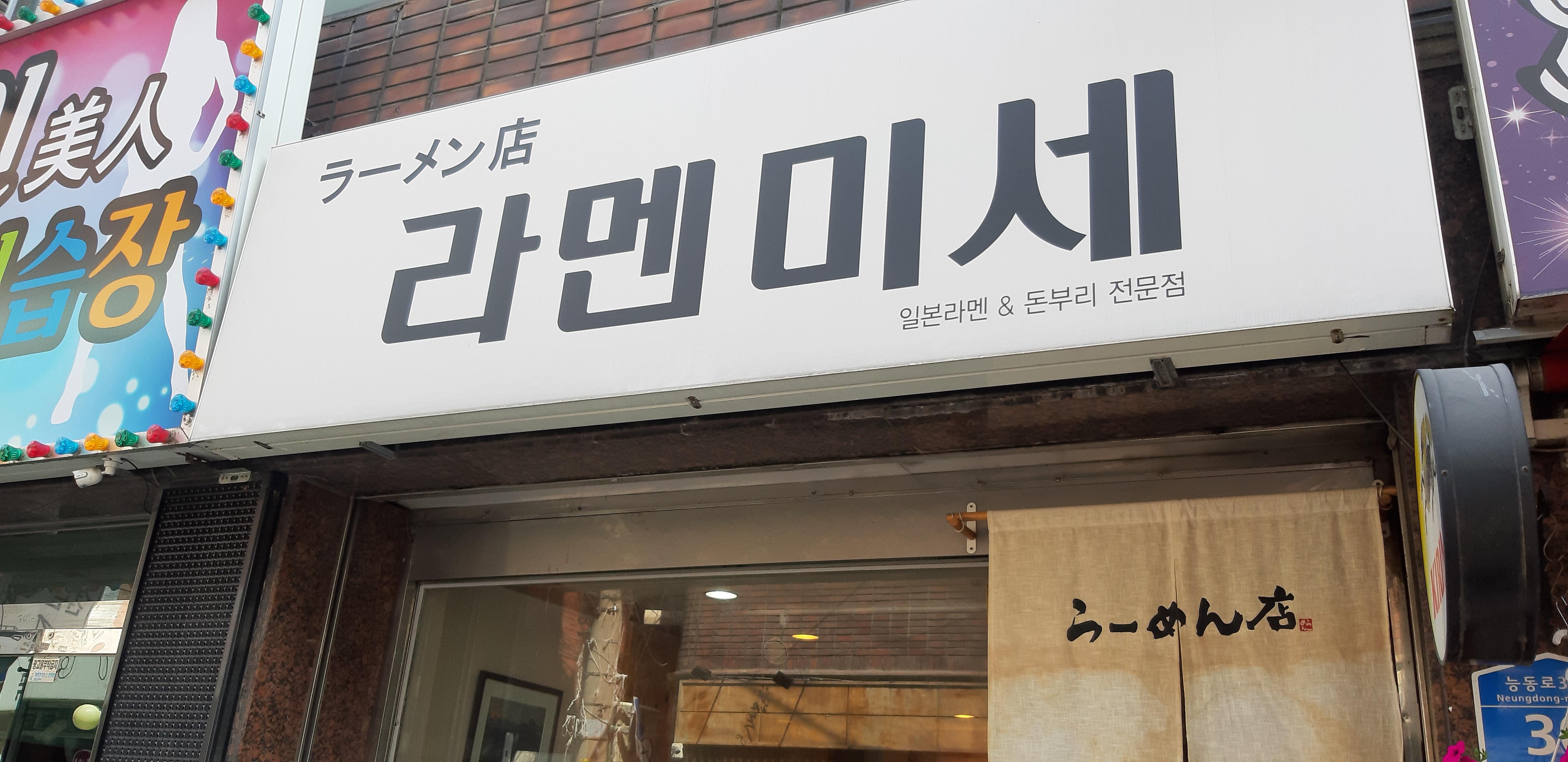 군자역에서 한 블록만 걸어가서 골목으로 들어가시면 말 그대로 라면 가게라는 뜻의 간판이 보입니다.