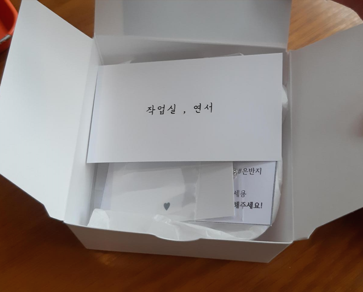 저는 작업실 연서의 인스타그램에 걸려있는 스마트스토어로 주문했습니다. 다른 반지나 팔찌, 목걸이 등 많은 은 제품을 판매하고 계시던데 개인적으로 굵은 반지가 제 취향이어서 나중에 그것만 추가 주문할까 생각 중입니다.