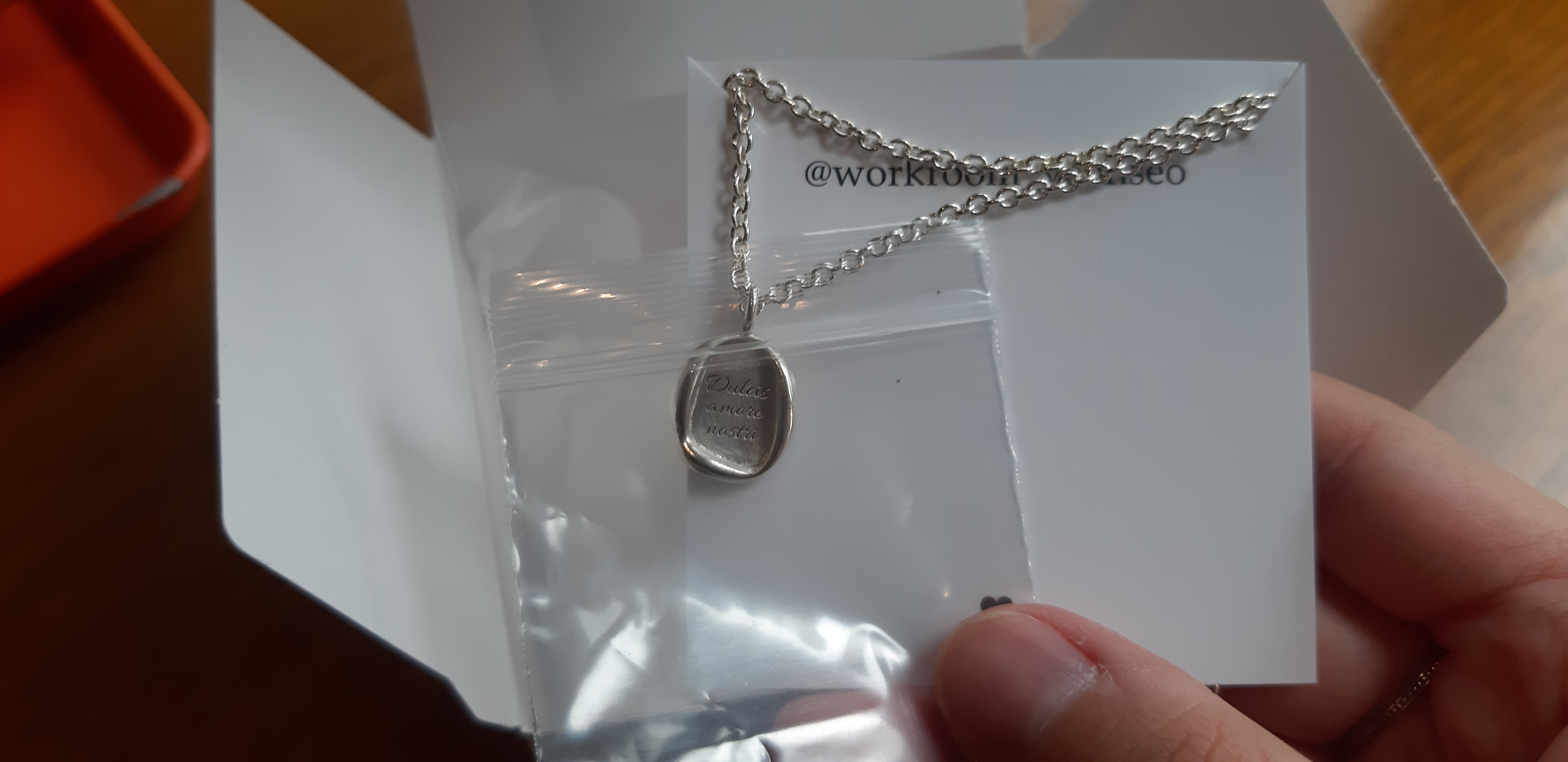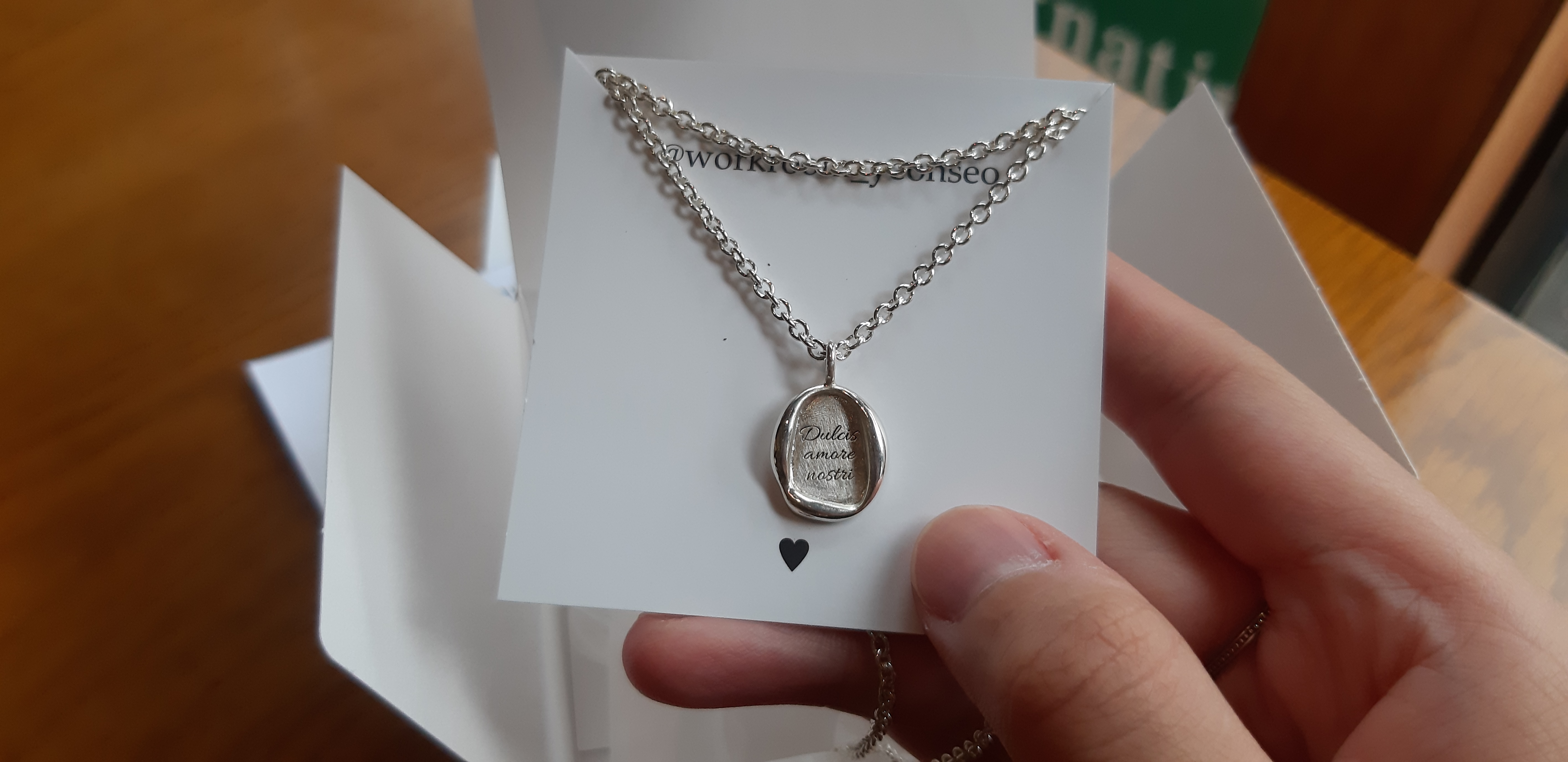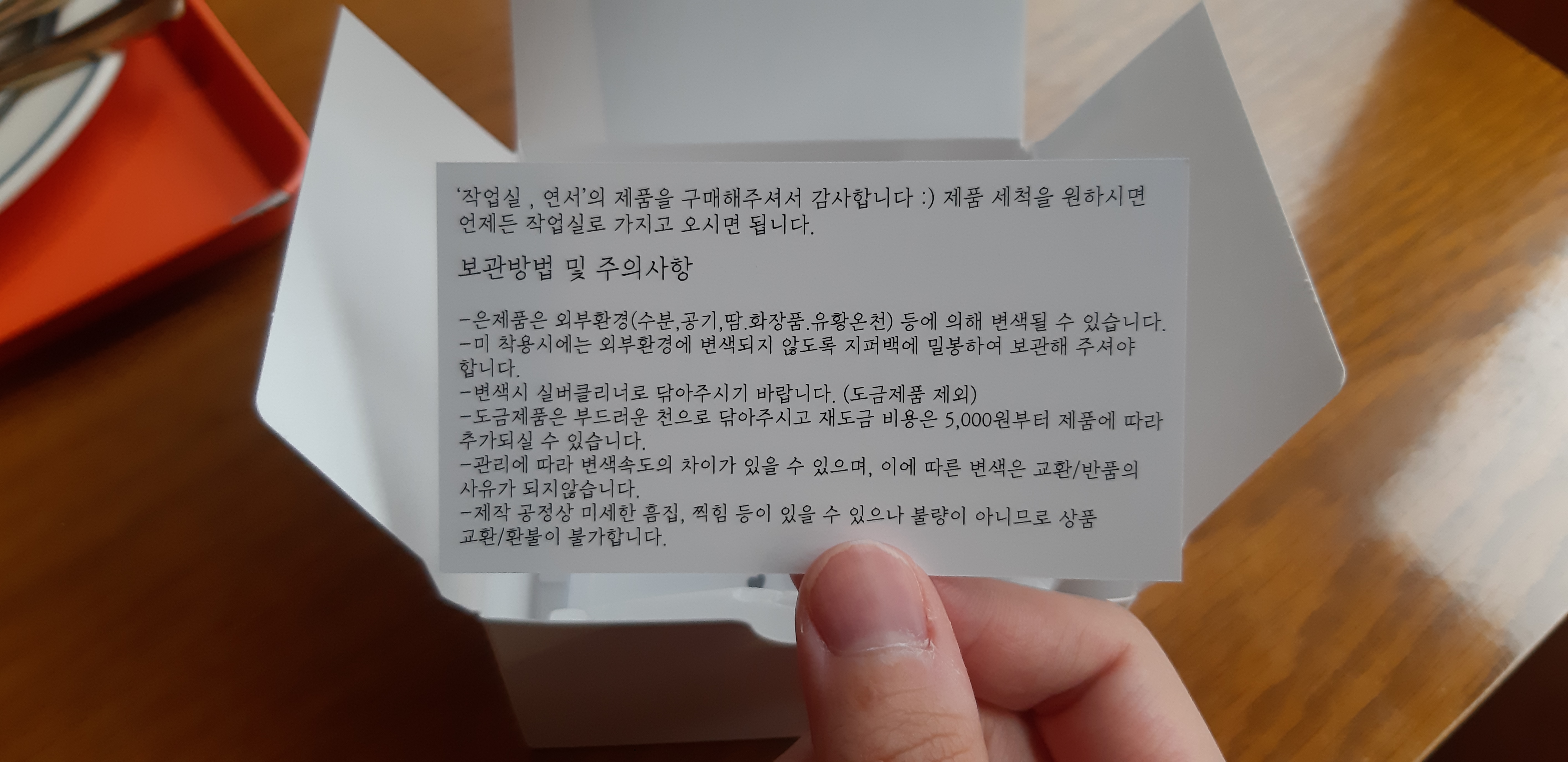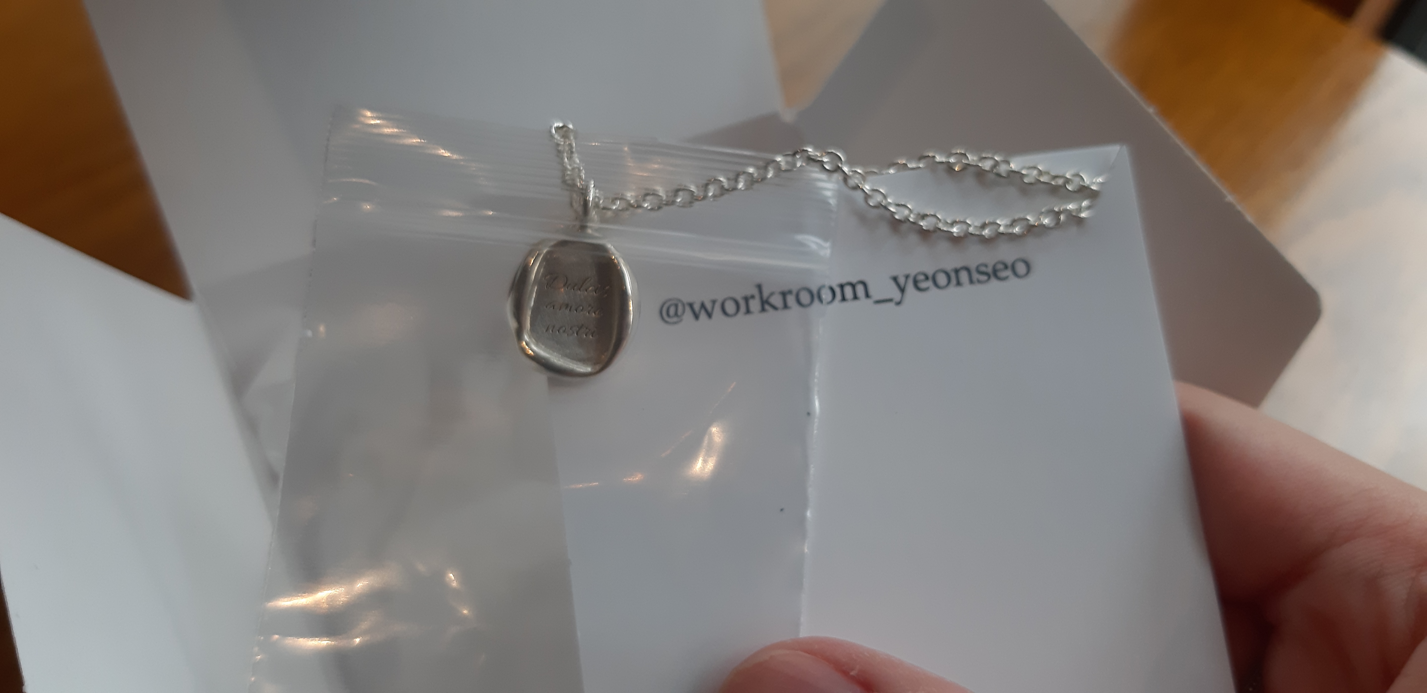 목걸이가 끼워져 있는 종이에 작업실 연서의 인스타그램 주소가 적혀있습니다. 개인적으로 만족스러웠던 제품이라 단순한 선의로 공유하는 것이니 오해 없으시길 바랍니다.