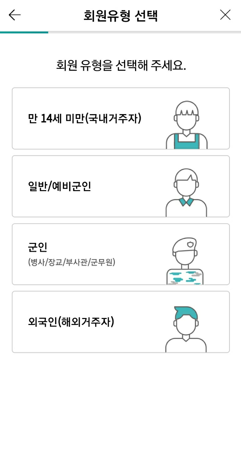 회원 유형에서 우리는 군인도 아닌 일반인이니까 두 번째의 일반/예비 군인을 선택해주시면 됩니다.