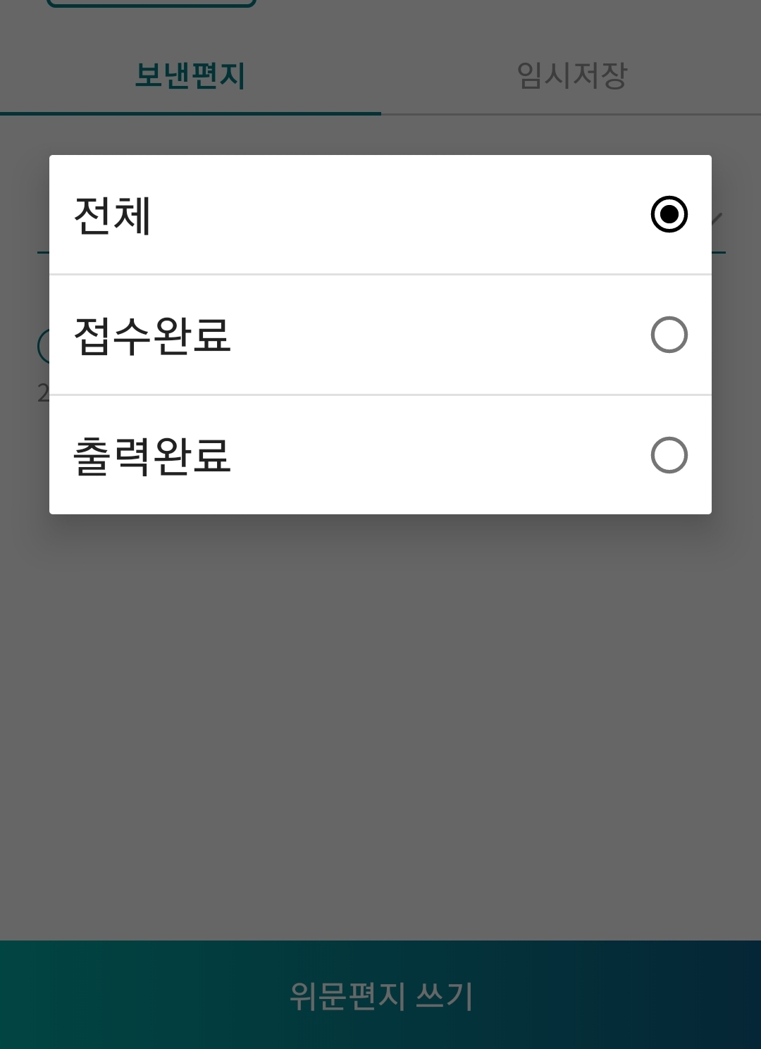 전체 목록에서 이렇게 접수완료, 출력완료 별로 분류해서 볼 수 있습니다. 간편하죠? 꽤 상세한 기능이 많아 따로 따로 찾을 필요없이 더 캠프 어플 하나에서 해결하면 되니 굉장히 편리하다고 느껴집니다. 그리고 군대 간 친구나 아들, 동생, 형, 애인에게 더 쉽고 빠르게 소식을 전할 수 있으니 좋은 어플이라는 생각이 드네요.