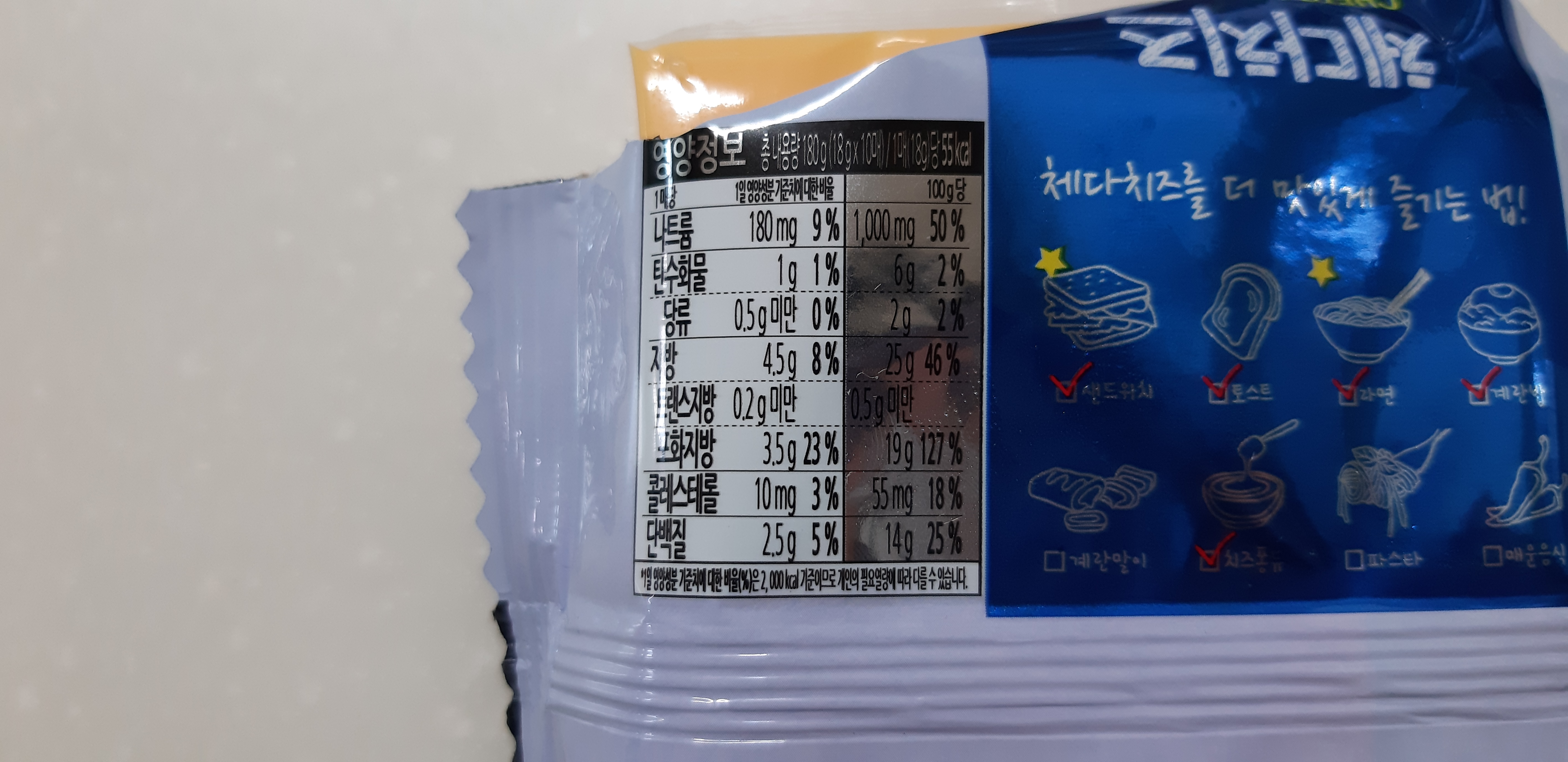 먼저 체다 슬라이스 치즈를 준비해줍니다. 아무래도 흰 슬라이스 칼슘 치즈 하는 것들은 맛이 없더라고요. 맛있으라고 만드는 간식인데 맛이 없으면 의미가 없겠죠? 그래도 슬라이스 치즈 2장 정도는 하루에 섭취해도 괜찮다고 하니 부담 없이 드셔도 괜찮습니다.