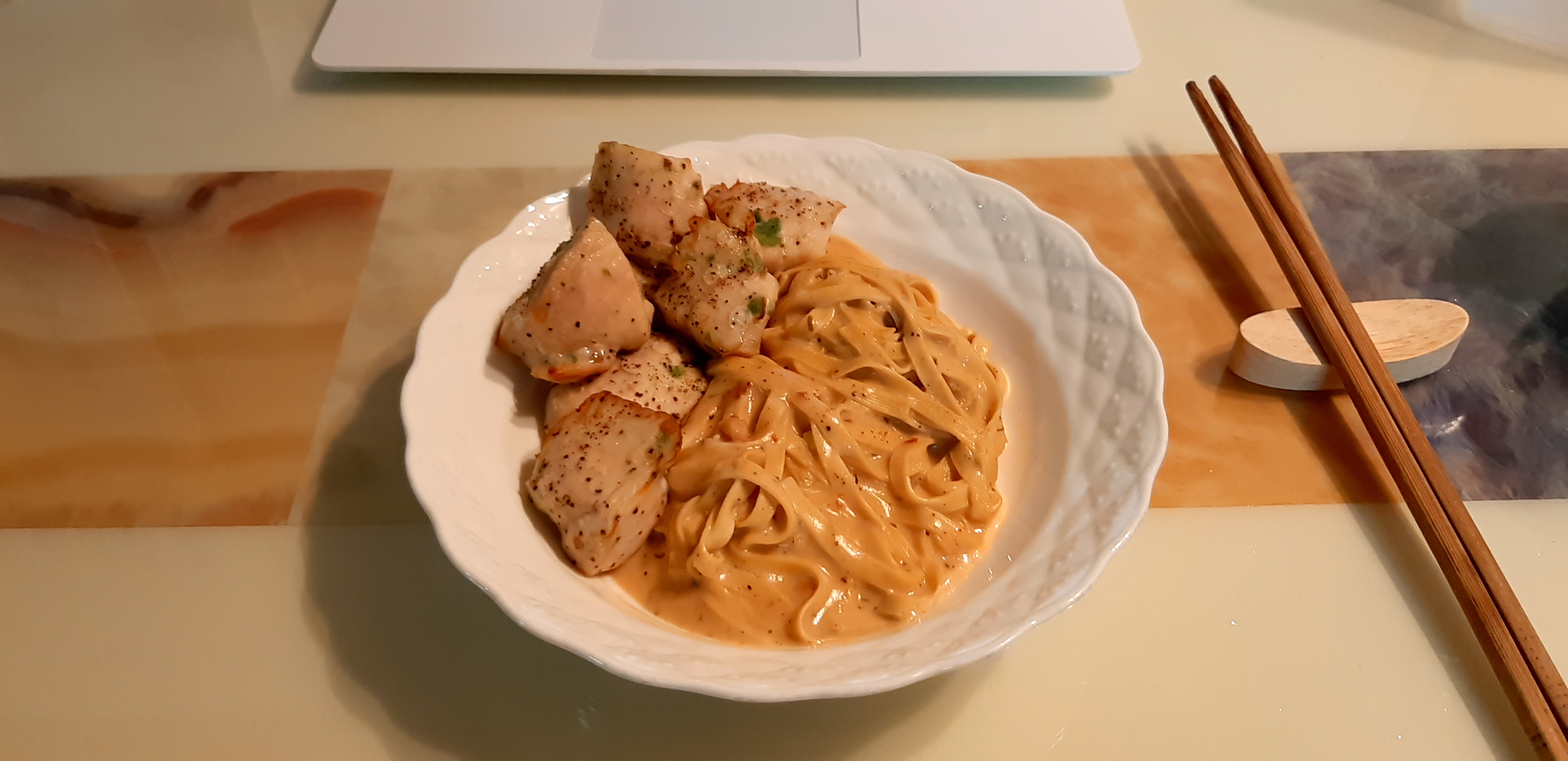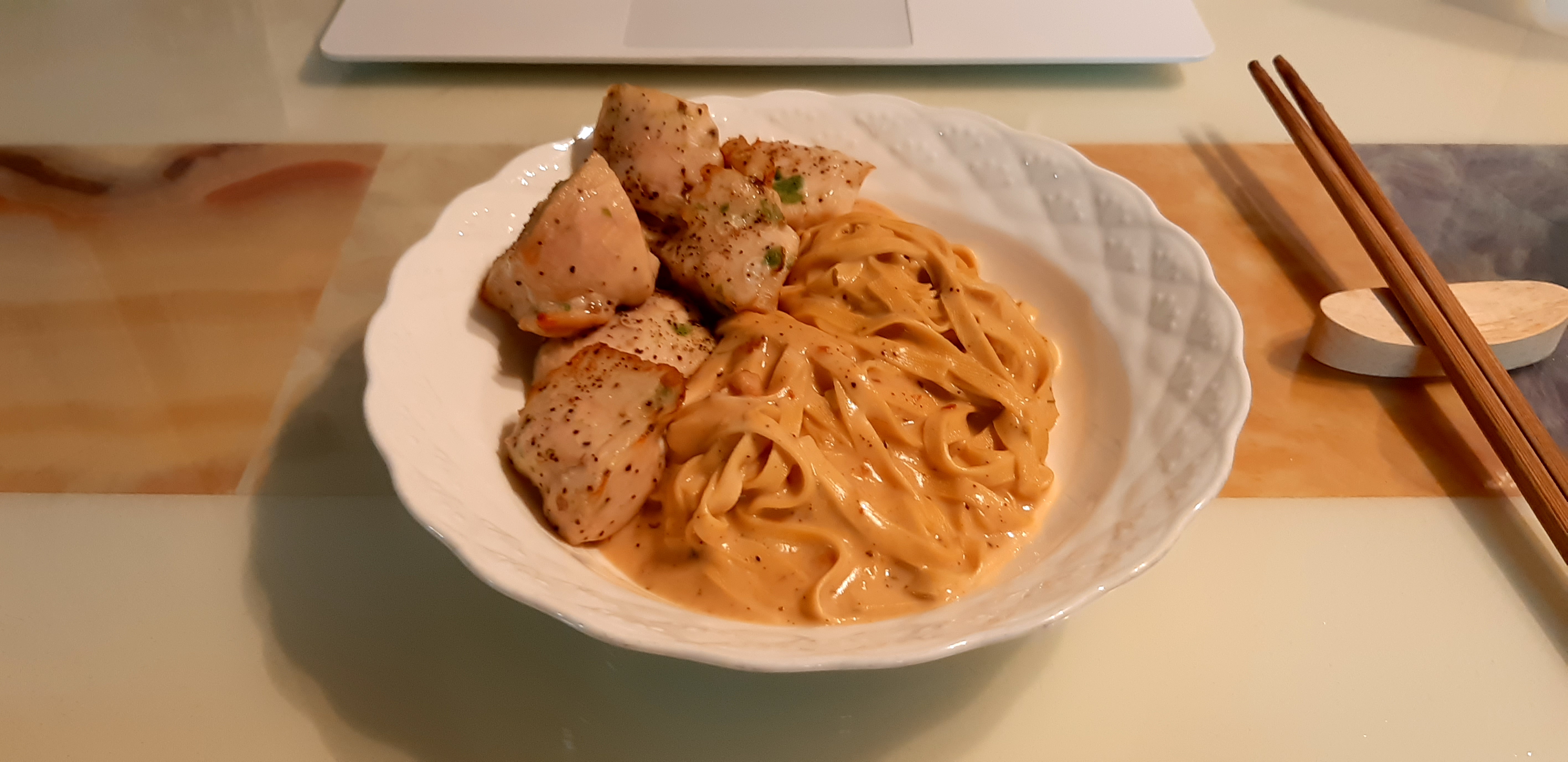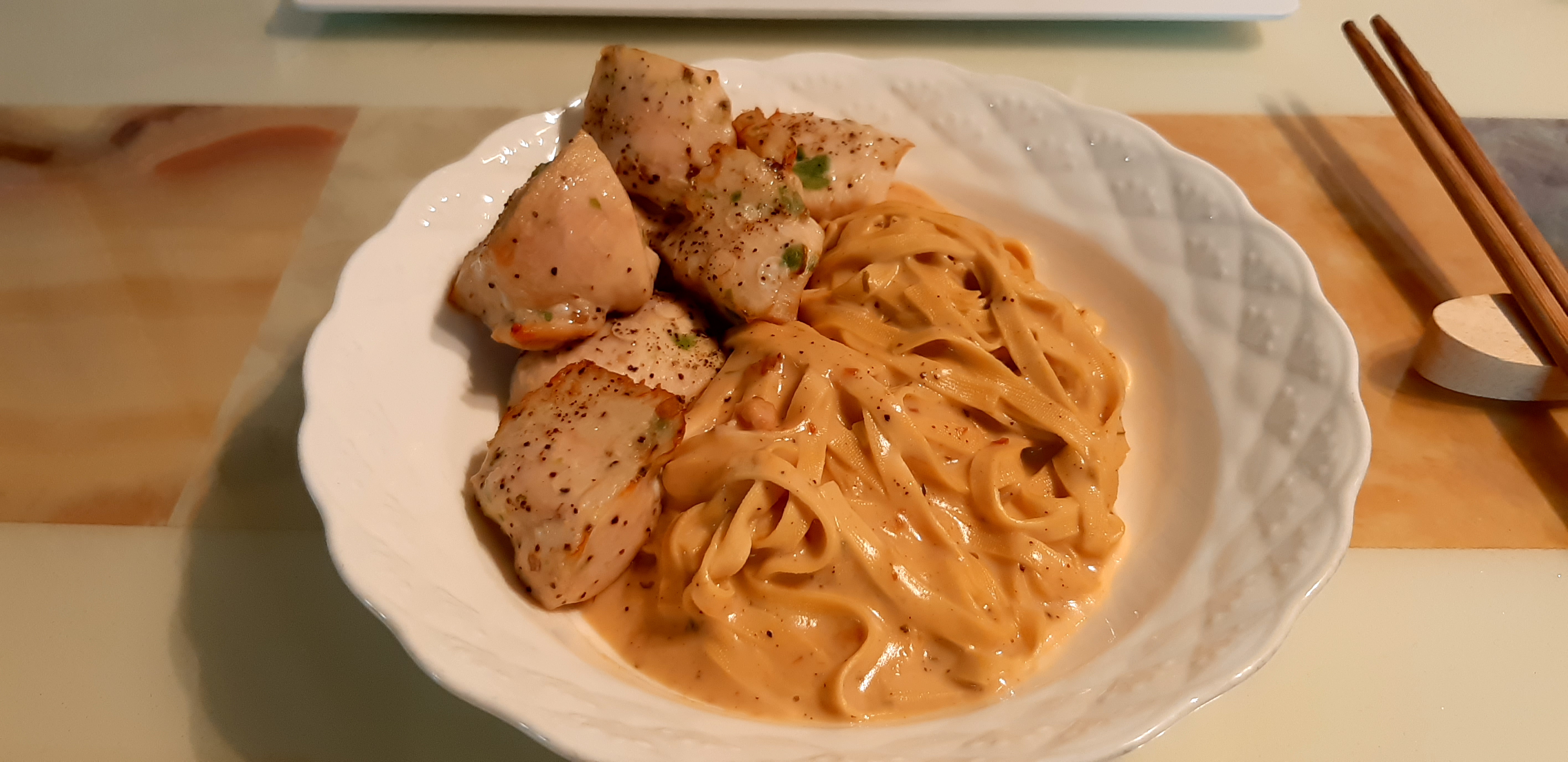 오늘은 이렇게 풀무원 두부면으로 다이어트 크림 투움바 파스타를 만들어보았습니다. 저는 단백질을 더하고 싶어서 닭가슴살까지 에어 프라이기에 돌려 얹어먹어 봤는데요. 조리 시작부터 넣어서 크림에 함께 조리해도 잘 어울릴 것 같습니다. 그럼 모두 건강한 식단 하시면서 건강한 다이어트 하시길 바랄게요.