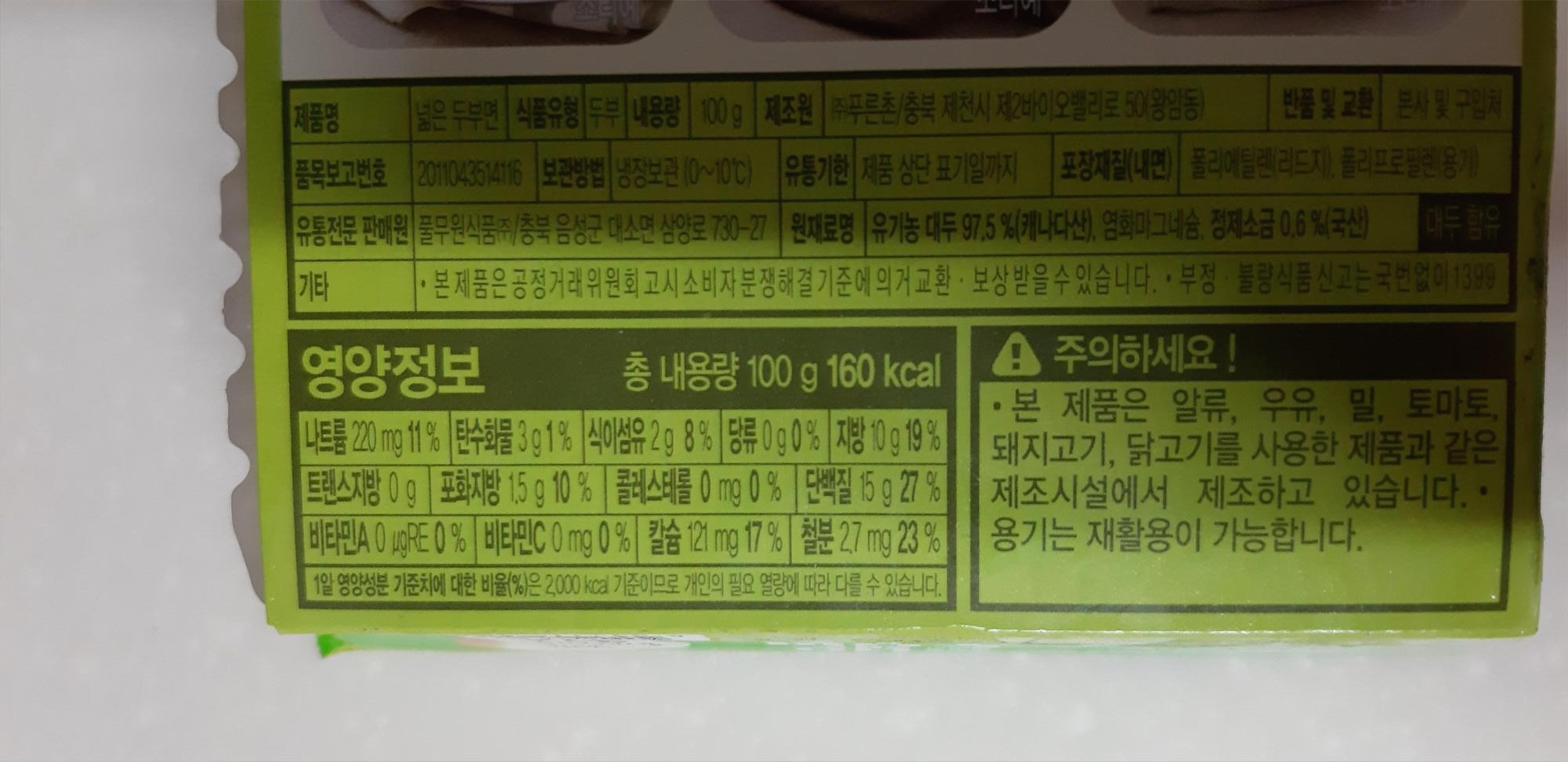 - 풀무원 넓은 두부면